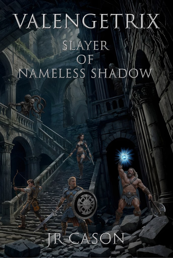 Merging Sword & Sorcery adventure with Lovecraftian horror, Valengetrix: Slayer of Nameless Shadow is part four in the continued saga of Valengetrix, exiled warrior of Aratania.